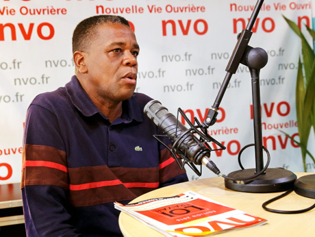 Le dirigeant syndical CGT d’Air France Medhi Kemoune s’est prêté au jeu des questions-réponses sur le plateau multimédia de la NVO lors du Forum social de la Fête de l’Humanité 2016.