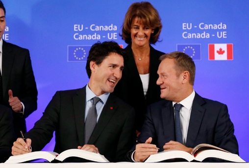 « Il nous faut être capables de convaincre nos citoyens que le libre-échange est dans leur intérêt, et pas seulement dans celui des grosses entreprises », a plaidé Donald Tusk, président du Conseil de l'Union européenne, ce dimanche lors de la signature du texte. Et Jean-Claude Juncker, président de la Commission, as tenté d'enfoncer le clou : « J'étais quelquefois vexé qu'on ait pu penser, en Europe, que nous sacrifierions sur l'autel de cet accord les droits des travailleurs […] Je trouve impertinent qu'on s'imagine que les principaux représentants du monde démocratique seraient en train de menacer la démocratie. » L'impertinence des critiques aurait perturbé l'impatience des défenseurs de l'accord…