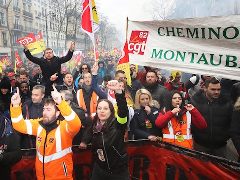 Une démarche partagée par les cheminots, qui eux aussi, s'opposent aux projets de réforme ferroviaire du gouvernement. L'intersyndicale CGT-Unsa-Sud-CFDT de la SNCF avait appelé dès le 15 mars à la mobilisation et annoncé une grève de deux jours sur cinq à partir du 3 avril. Opposition à l'ouverture à la concurrence, à la transformation de la SNCF en société anonyme, à la suppression de certaines lignes dites « secondaires », à la suppression du statut des cheminots à l'embauche… La CGT défend un autre projet pour le rail, qu'elle a développé dans un rapport Ensemble pour le Fer, remis au gouvernement. Les cheminots étaient, en outre, rejoints par « des camarades de l'énergie, des transports, mais aussi beaucoup d'usagers », s'est réjoui Laurent Brun, secrétaire général des cheminots CGT.