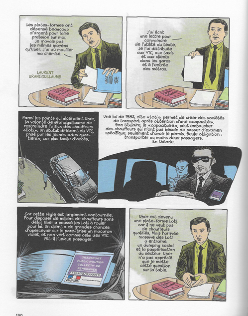 « Uber, sans choix ni loi » est une enquête d'Alexia Eychenne, dessinée par Thierry Chavant, qui invite à suivre le parcours de Kamel. Employé comme paveur, licencié pour motif économique, il se lance dans l'aventure Uber.