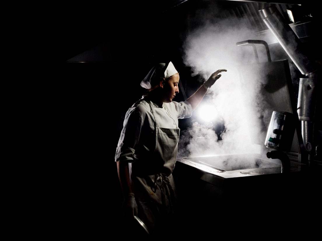 Hospital cafeteria of Asti, Italy, 2011 © Steve McCurry / Magnum Photos « La préparation des repas participe à l’ensemble de la chaîne de santé. Il y a un énorme contraste entre l’objet même de l’établissement – la santé des individus – et un espace de travail très confiné, pénible. »