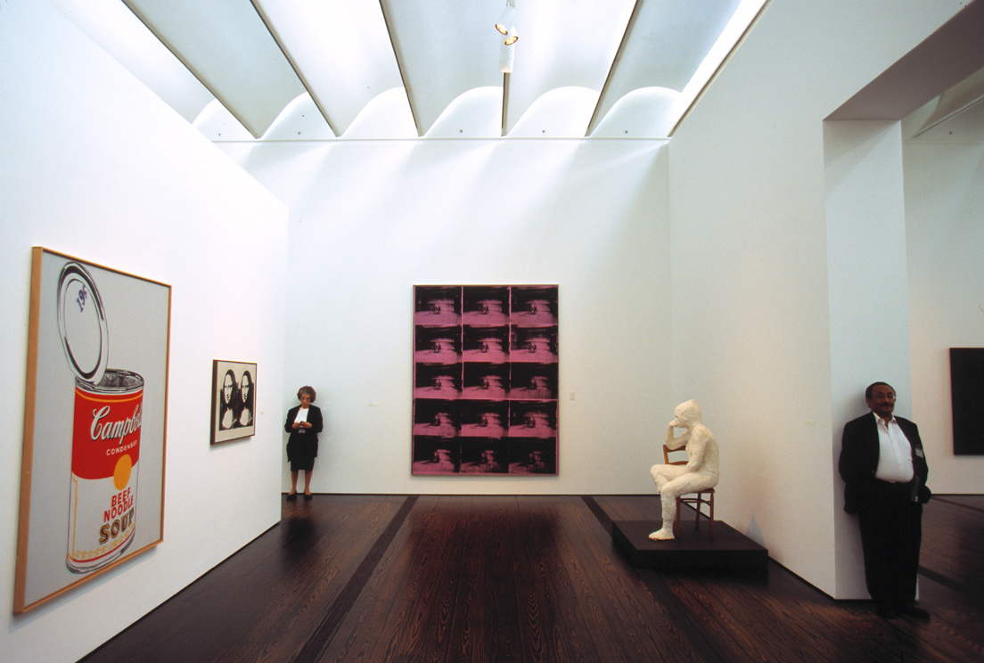 Modern Gallery of the Menil Collection, Houston, Texas, USA, 2000 © Thomas Hoepker / Magnum Photos « Dans une des œuvres d’art exposées dans cette salle de musée, un être humain est en position assise alors même que les surveillants, de vrais êtres humains, sont, eux, debout. Le contraste, la contradiction sont frappants. On se demande si ce ne sont pas les œuvres qui surveillent les surveillants »