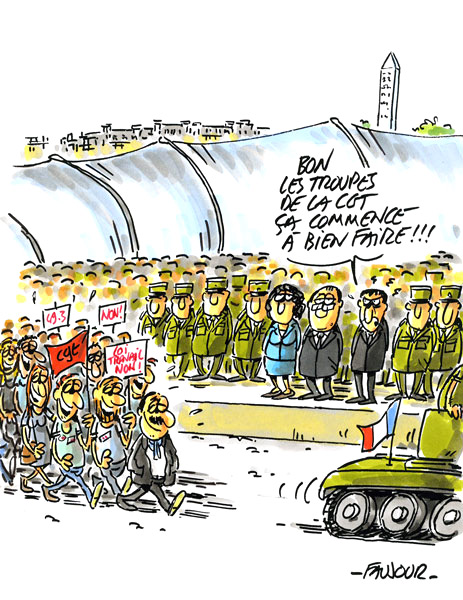 Ce 14 juillet, Manuel Valls et François Hollande auraient paraît-il l'intention de compter les militaires qui défileront sur les Champs-Elysées. Histoire de se rassurer avant la manifestation à laquelle appellent CGT, FO, FSU, Solidaires, Unef, UNL, Fidl le 15 septembre.