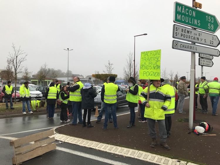 Depuis 7 heures du matin, quelque 200 personnes vêtues du gilet jaune de rigueur tiennent le rond-point de Charmeil, une bourgade dont la route principale mène à Vichy (Allier). À l'autre bout de la ville, même topo. Sur le rond-point de Bellerive-sur-Allier, des citoyens « en colère et apolitiques » filtrent au compte-gouttes les voitures et camions qui veulent emprunter la départementale D6.