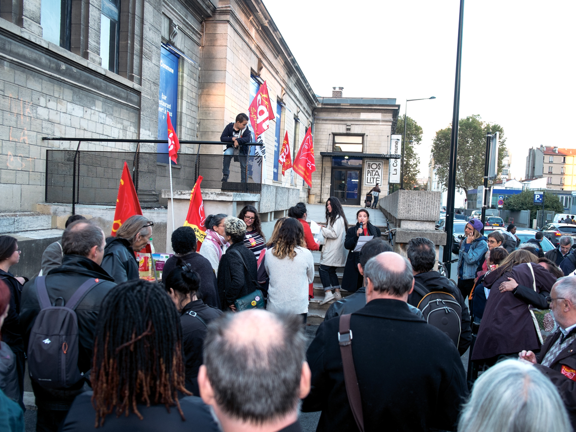 Le deuxième rassemblement de solidarité avec les grévistes organisé par le Synptac-CGT devant les portes du théâtre d'Aubervilliers, le 3 octobre, a été gratifié de la venue de Philippe Martinez en soutien aux salariés.