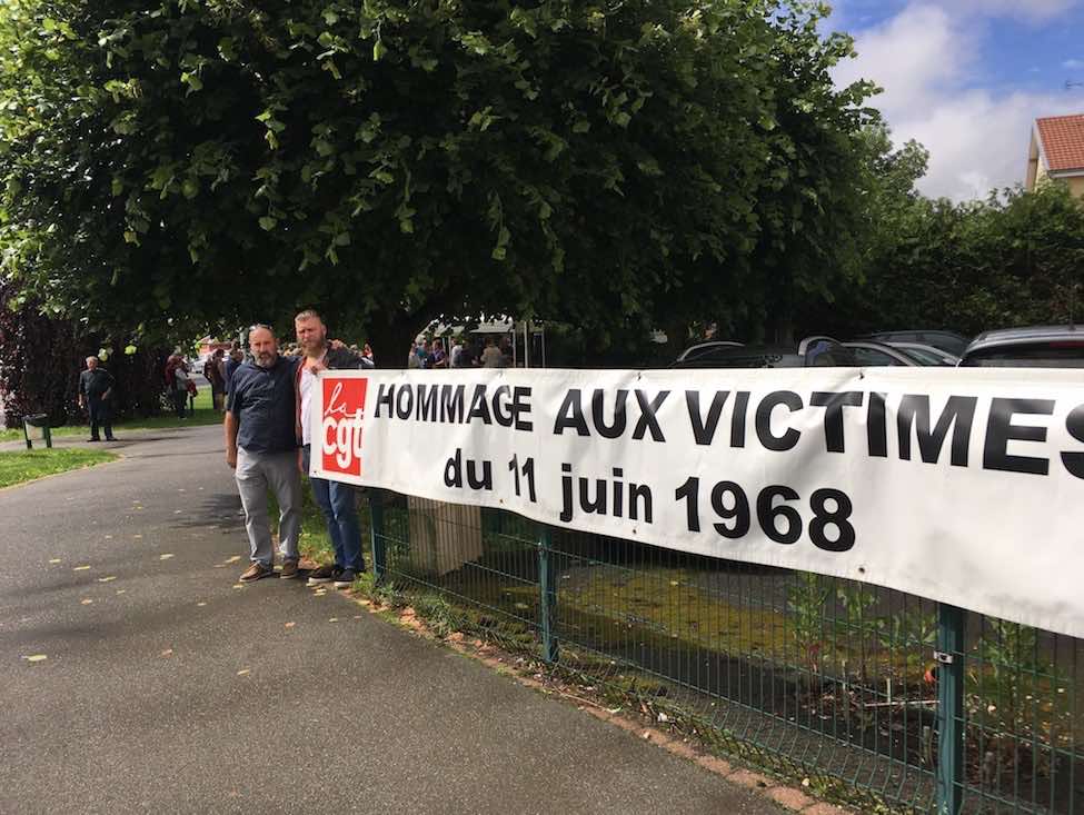 50 ans plus tard, la cérémonie a une dimension plus émouvante encore avec la présence de la veuve et de la fille de Pierre Beylot venues déposer une gerbe à la mémoire du jeune ouvrier de 24 ans tué d'une balle de 9 mm en plein cœur par un CRS aux portes de l'usine et de Henri Blanchet, victime des tirs de grenades offensives des forces de police. Ce matin du 11 juin 1968, alors que le mouvement de grève persiste et que les négociations de Grenelle se sont achevées avec les avancées que l'on connaît, la direction de Peugeot refuse encore de recevoir les syndicats.