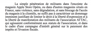 Apple avait assigné les militants « alterfiscalistes » en justice pour les empêcher d'occuper ses points de vente afin de protester contre les pratiques d'évasion fiscale. Mais vendredi dernier, le tribunal de grande instance (TGI) de Paris a renvoyé Apple dans ses cordes qui entendait faire interdire à Attac de continuer ses happenings autour de ses magasins français, sous astreinte de 150 000 euros par récidive. Selon les juges : « la simple pénétration dans l'enceinte de magasin, sans violence, sans dégradations, ne suffit pas à caractériser un dommage imminent justifiant de limiter le droit à la liberté d'expression et à la liberté de manifestation ». L'ordonnance du TGI est claire : « Aucune dégradation n'est invoquée par Apple Retail France, qui parle de “vandalisme” ou d'actions mettant en cause la sécurité de ses employés et clients. » Mieux, en plus du droit de manifester pacifiquement, la justice a aussi reconnu dans ses attendus une « campagne d'intérêt général sur l'évasion fiscale. »