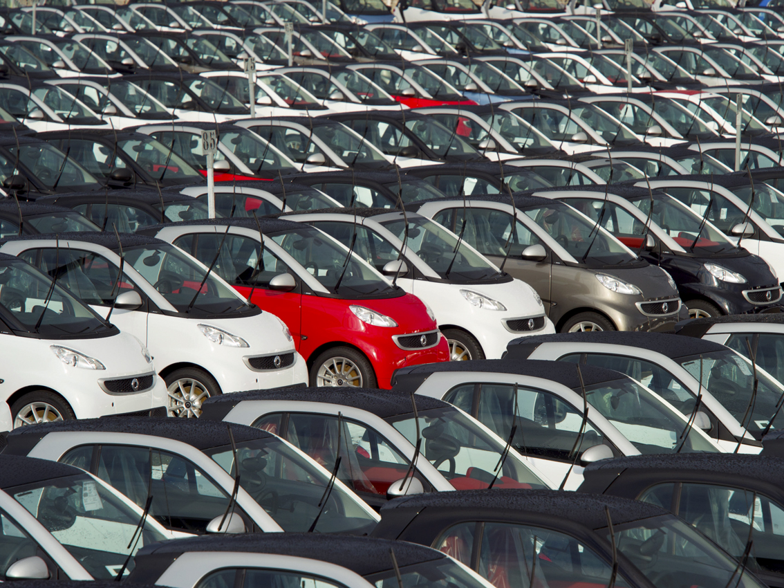 Parking de véhicules Smart neufs de l'usine auto Smart de Hambach.