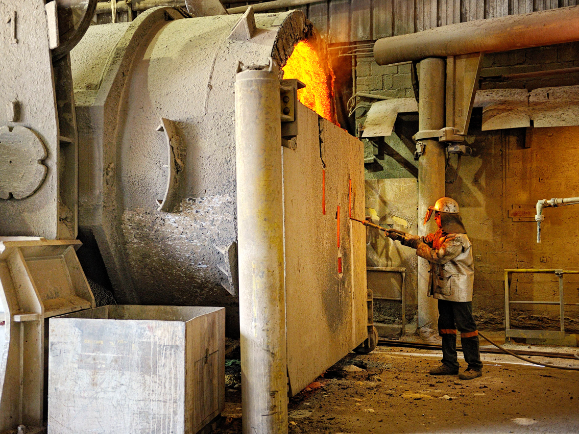 Nettoyage des poches d'aciers dans l'aciérie Ascoval de Saint-Saulve.