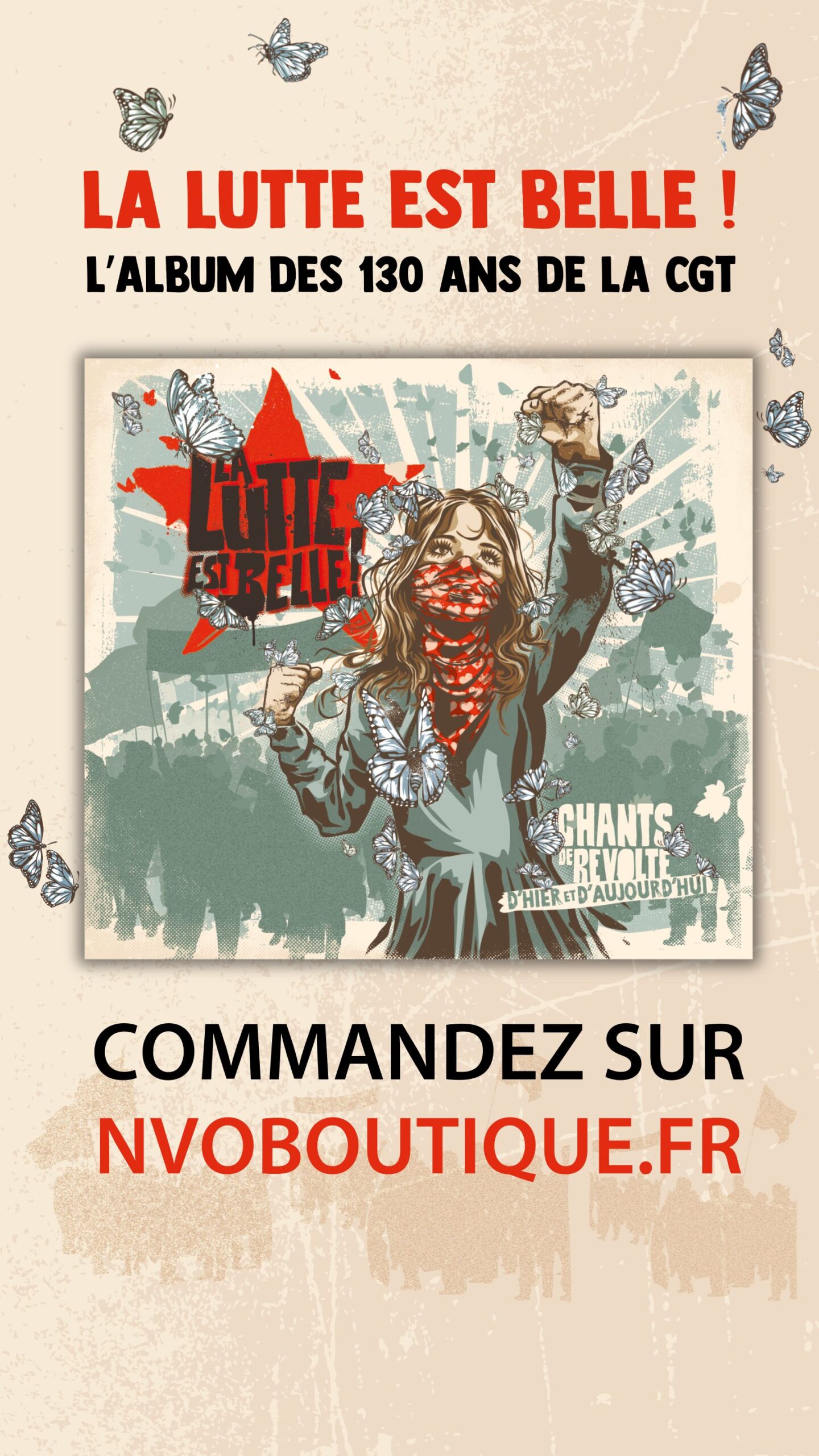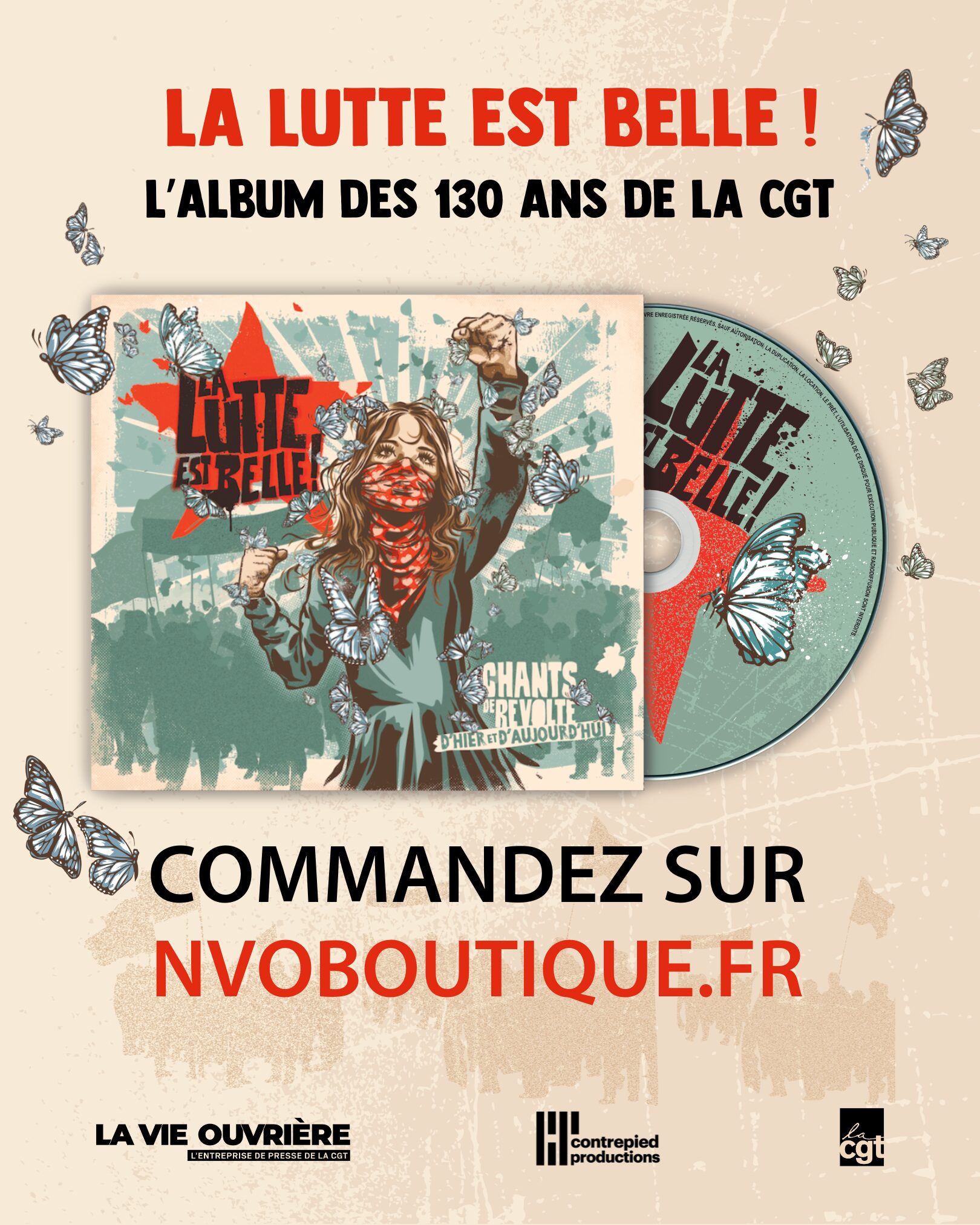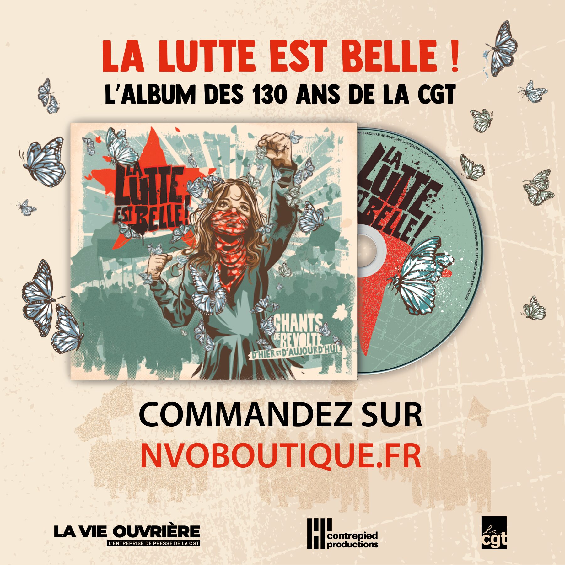 À l’occasion de cet anniversaire, la CGT et son entreprise de presse La Vie Ouvrière, se sont associées à Contrepied production pour créer un album musical, afin de revisiter des chansons qui ont marqué l’histoire et créer de nouveaux airs de résistance. Mettre des mots et des mélodies sur les colères qui traversent notre société, sur nos révoltes, sur nos espoirs. »