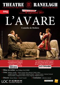 Quelques lignes suffisent pour reconnaitre l'imbroglio familial qui forme l'intrigue principale de L'Avare, classique parmi les classiques. Sous la direction du metteur en scène Jean-Philippe Daguerre, la troupe théâtrale du Grenier de Babouchka fait vivre, avec une belle énergie, l'une des farces sociales les plus célèbres de Molière. Comme toujours avec Jean-Baptiste Poquelin, autour des personnages principaux s'agite le ballet des « gens de peu » qui — pour Molière — comptent beaucoup : valets, gouvernantes et cuisinière se jouent avec force et malice des puissants. Molière épingle encore les travers d'un notaire étriqué, dépassé par la situation, des intrigantes ridicules qui froufroutent autour du vieux pingre. Quant à la fameuse tirade de la cassette, si le public semble s'en délecter comme une friandise venue tout droit de l'enfance, elle est — en ces temps délétères où l'argent s'évade, s'optimise, achète et corrompt — d'une actualité qui symbolise l'absolue folie des hommes pour l'argent.