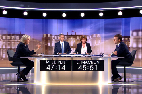 Qui plus est, résumer ainsi l'état de la société qui ne se retrouverait que derrière l'un ou l'autre des deux présents au second tour, comme l'ont avancé certains médias et commentateurs, reviendrait aussi à sous-entendre que face au projet libéral d'Emmanuel Macron, celui de Marine Le Pen, certes inapplicable, viserait tout de même à défendre les ouvriers, les chômeurs, les précaires… Alors qu'il n'en est rien. Même si l'héritière du FN a de nouveau cherché à le faire croire, lors du face-à-face télévisé du mercredi 3 au soir, tentant de se présenter comme femme du peuple défendant le peuple en en appelant à la nation.