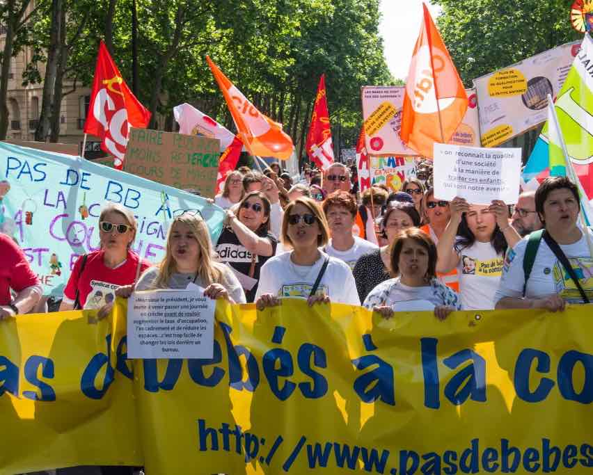 Les professionnels de la petite enfance étaient en grève et manifestaient le 23 mai à l'appel du collectif « pas de bébés à la consigne » contre la réforme de la loi fixant les conditions des modes de garde.