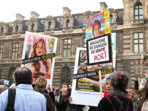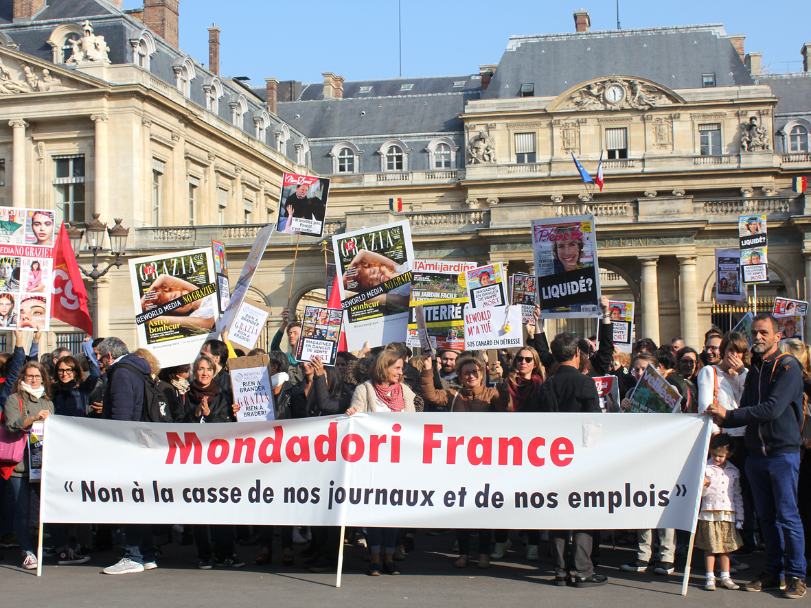 Pour le très controversé groupe Reworld Media, acheter Mondadori France serait un coup financier lui permettant de faire main basse sur trente titres de presse pour les transformer en supports publicitaires. Mais les 700 salariés concernés n'entendent pas laisser vampiriser leurs magazines. Ils ont manifesté à Paris le 18 octobre.