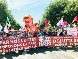 « Nous exigeons un monde de paix et de progrès social. » Par ce jeudi ensoleillé, les syndicats, collectifs et manifestants s’étaient donné rendez-vous place de Bretagne, à 10h30. L’ambiance était détendue. Une heure plus tard, le cortège prenait la direction du quartier de Villejean, lieu d’une récente fusillade liée au narcotrafic dans un établissement de restauration rapide de la dalle Kennedy, et une arrivée à la ferme de la Harpe pour un pique-nique collectif.
