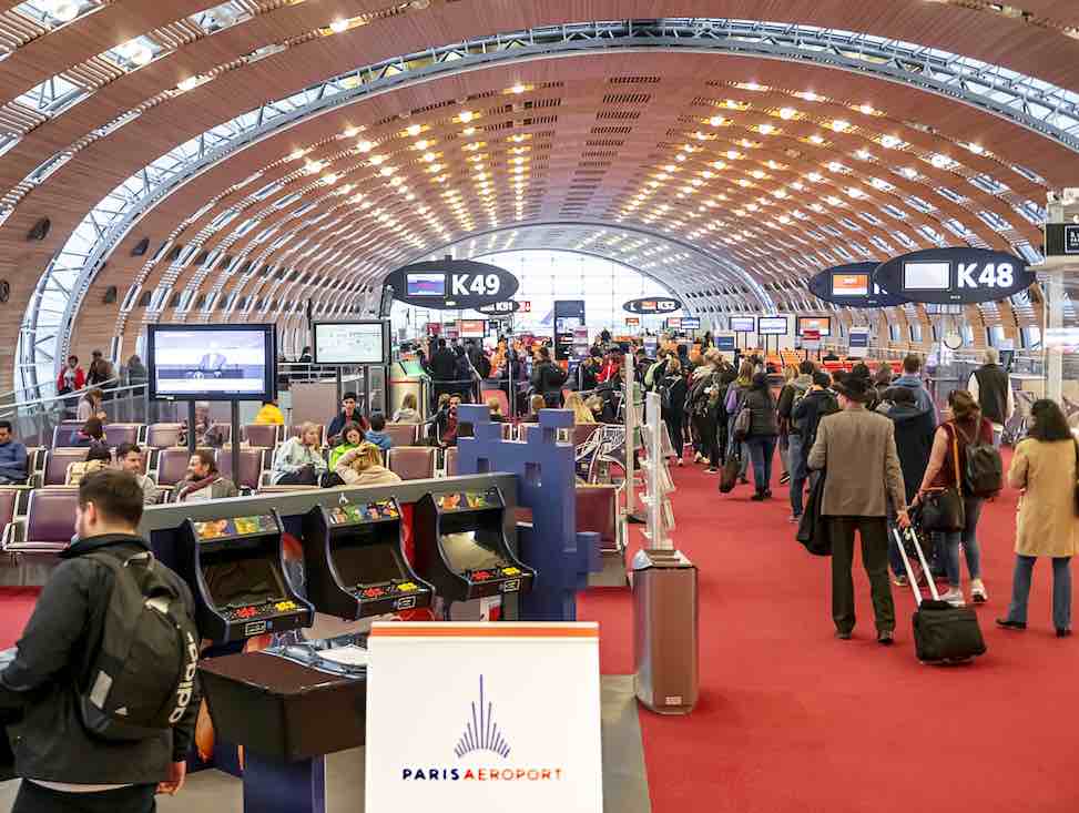 Hall d’embarquement, passagers, boutiques, au terminal 2E de Roissy – Charles-de-Gaulle