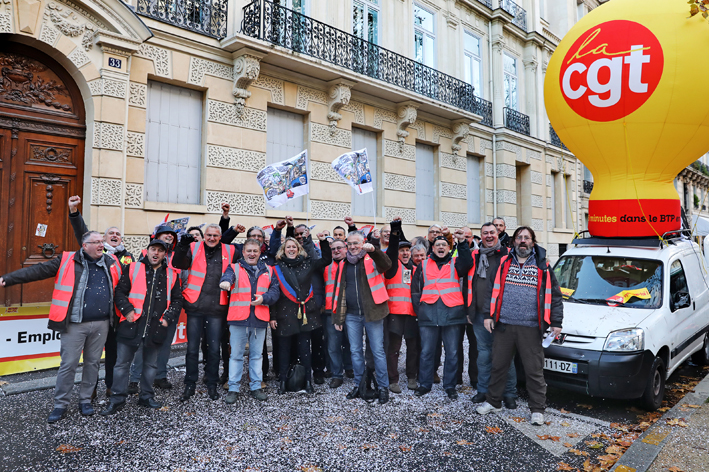 Rassemblement FNSCBA CGT de soutien pour Philippe Christmann et pour les Libertés Syndicales, devant la FFB Fération française du bâtiment, Paris 28 nov 2017