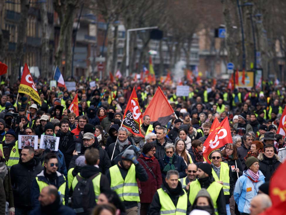 Une AG réunissant des gilets jaunes, la CGT, Solidaires, la FSU et un syndicat étudiant s'est tenue le 10 janvier 2019 à la bourse du travail de Toulouse. Les gilets jaunes demandent aux syndicats de prolonger leur mouvement par la grève.